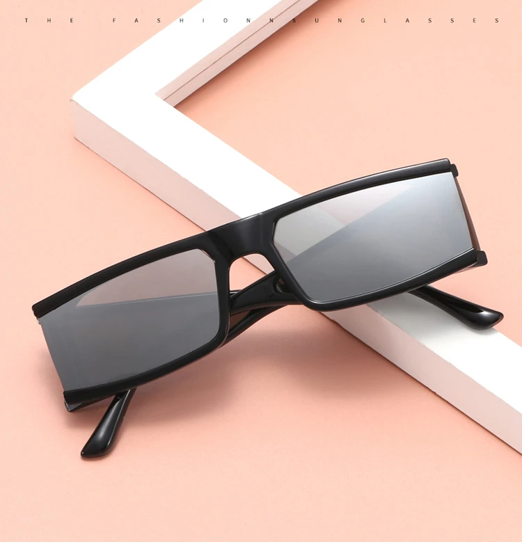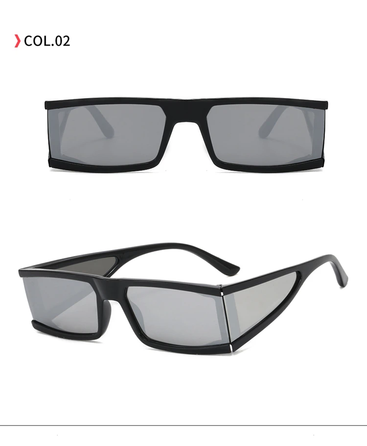 ASAHI Wraparound Rectangle Sunglasses UV400 Lens - Black / Silver Lens